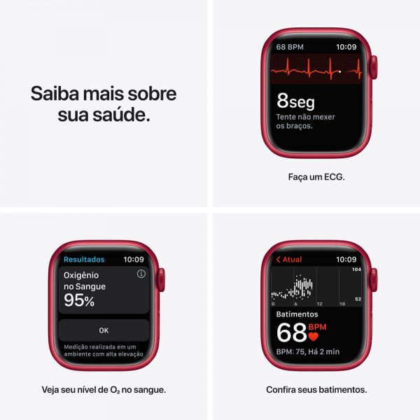 APPLE WATCH SERIES 7 GPS, 41MM CAIXA (PRODUCT)RED DE ALUMINIO PULSEIRA ESPORTIVA (PRODUCT)RED PADR